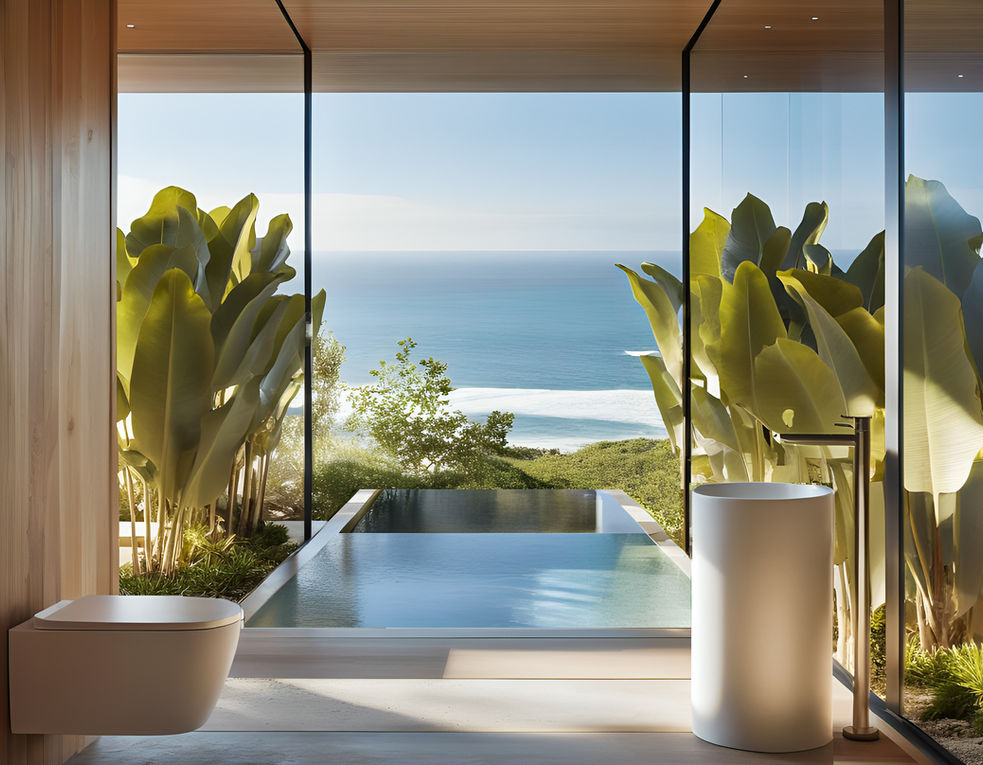 Панорамное остекление открывает завораживающий вид на бескрайний океан и тропический сад, позволяя вам быть в гармонии с окружающим миром, не выходя из дома.
